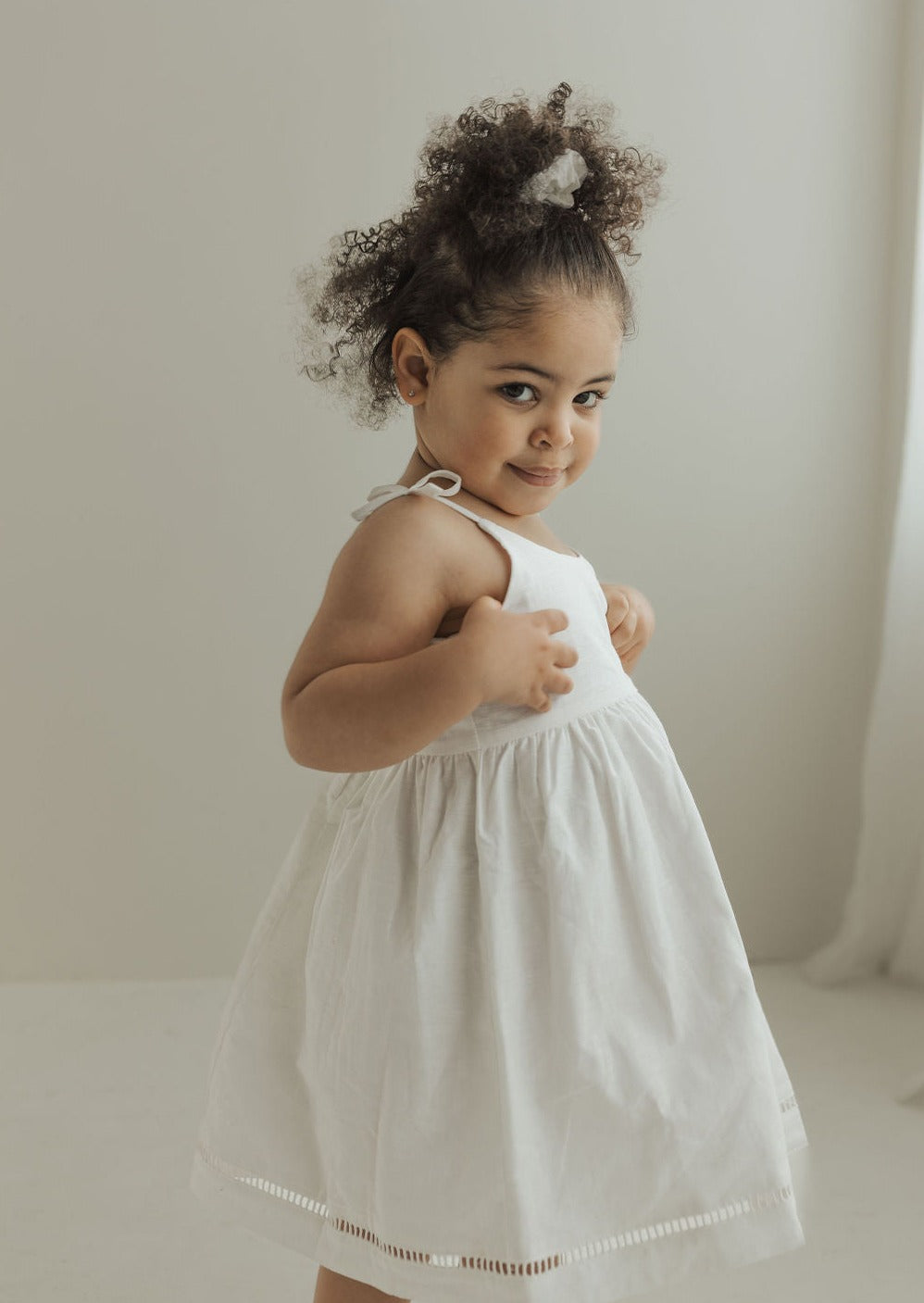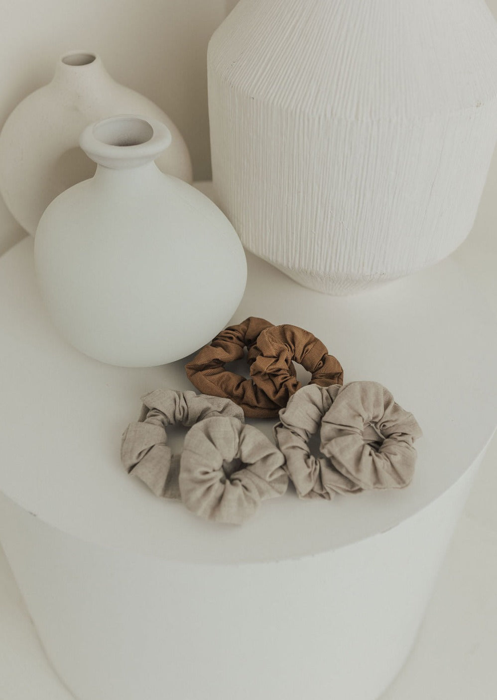 Match your mini while lounging around the house or heading out to play. Our mommy and me scrunchies come in a beautiful neutral colour range that can easily compliment your favourite outfits. These scrunchies are designed to be soft and comfortable while holding hair up. Pair with our bow strap dress or linen button romper to complete the look.