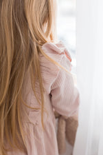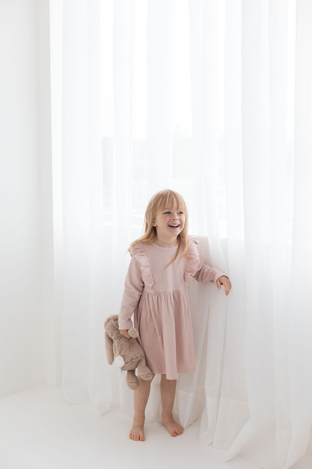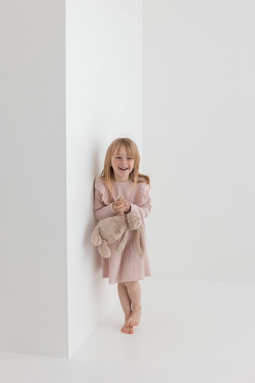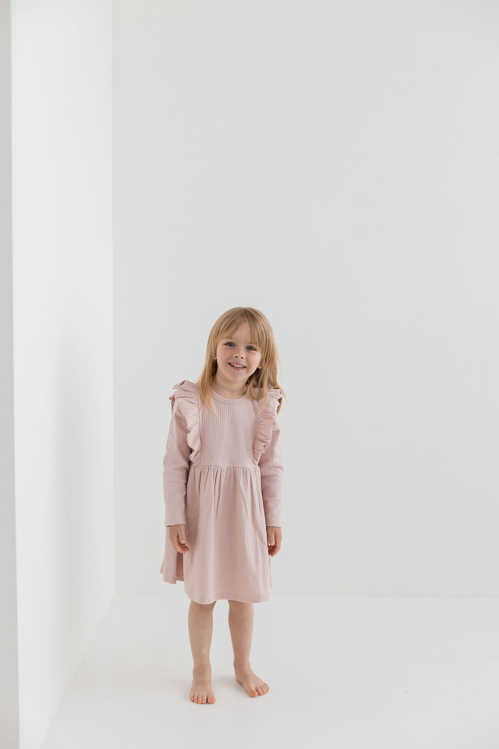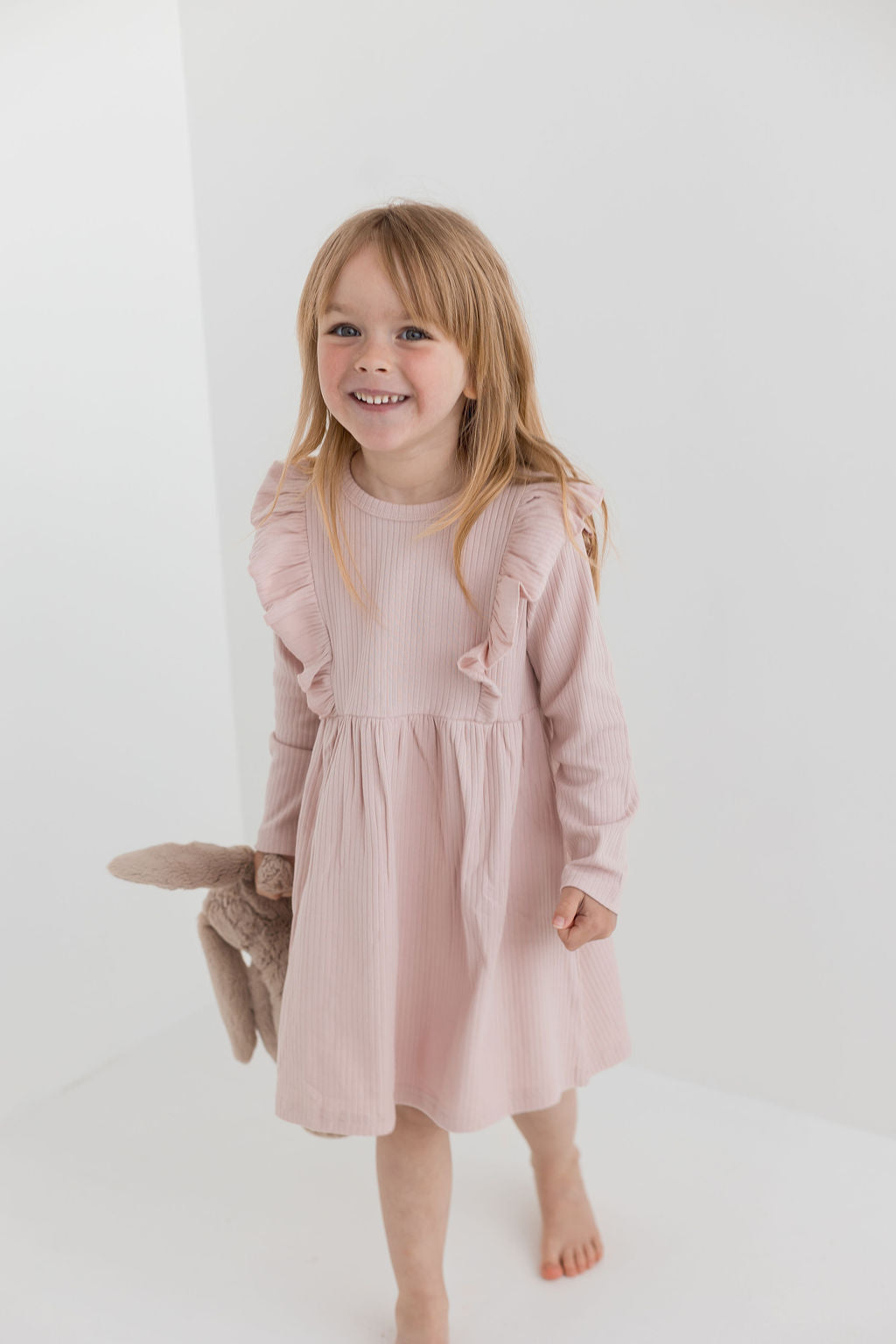 Notre robe à manches volantes côtelées est conçue pour les mamans occupées qui souhaitent un style sans effort sans compromettre la durabilité. Fabriqué à partir d'un mélange de coton biologique doux et respirant, il est doux pour les peaux sensibles et conçu pour tous les petits moments de la vie - des photos de famille aux aventures quotidiennes. La silhouette élégante en A ajoute une touche intemporelle, tandis que le tissu côtelé assure un étirement confortable qui accompagne votre enfant.